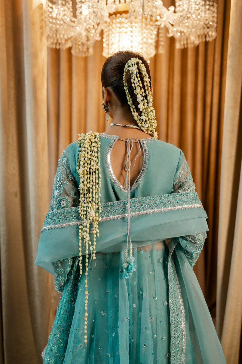Embroidered composed Sleeves with hand work(organza)